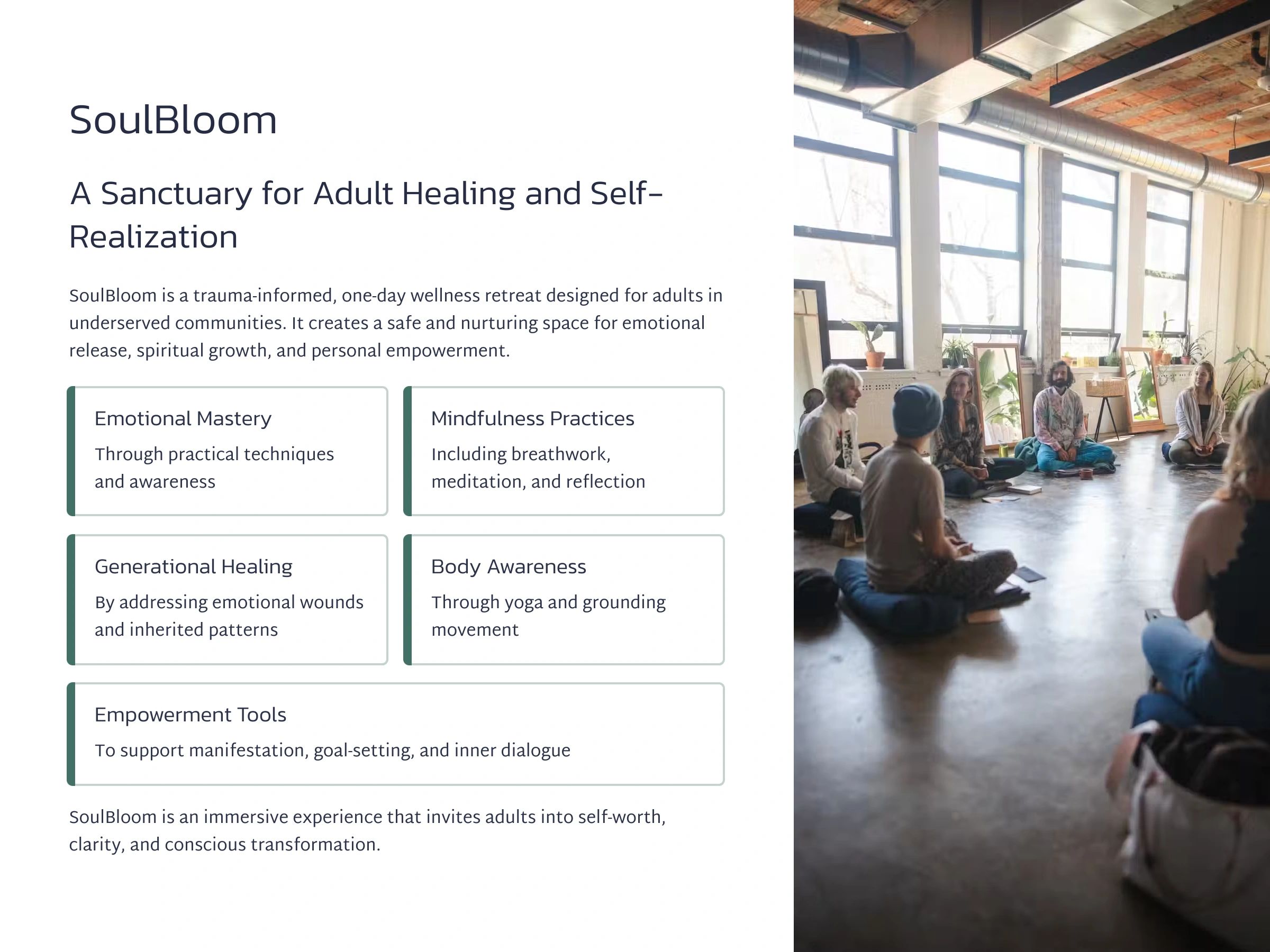 SoulBloom: A transformational experience for adults ready to live with clarity, purpose, and inner peace